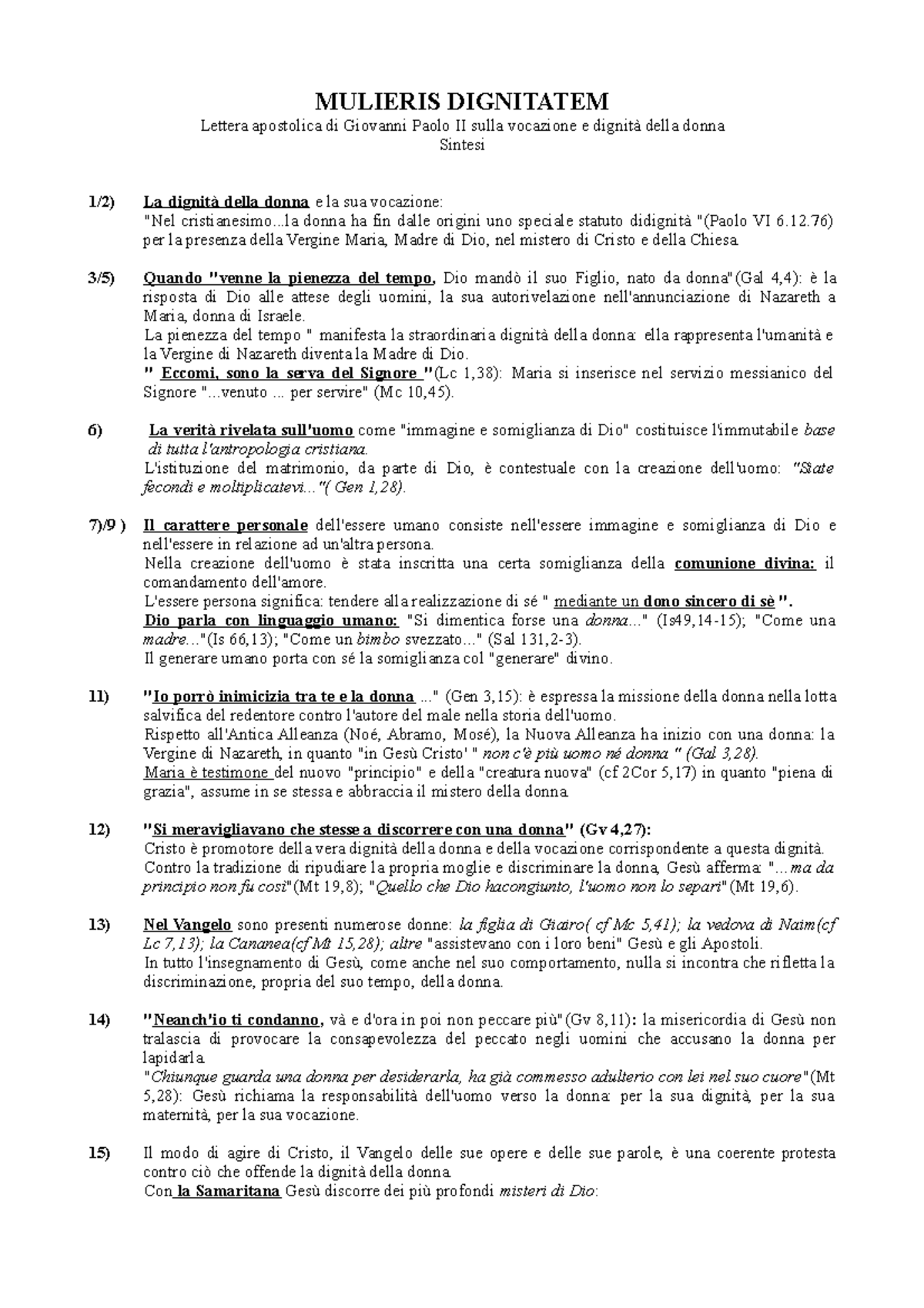 La salvezza è solo Gesù Cristo "L'ascensione di Gesù come ingresso nella gloria" "Solo l'io-conscio ha il potere di separarci da Cristo: né θάνατος (morte), né ζωὴ (vita), né niente altro" "Lo star fermo equivale al tornare sui propri passi" (S. Pio, Epistolario) Sposa di Cristo non contraddice l'essere-madre La presenza reale di Cristo nell'Eucaristia (S. Alfonso M. de'Liguori)